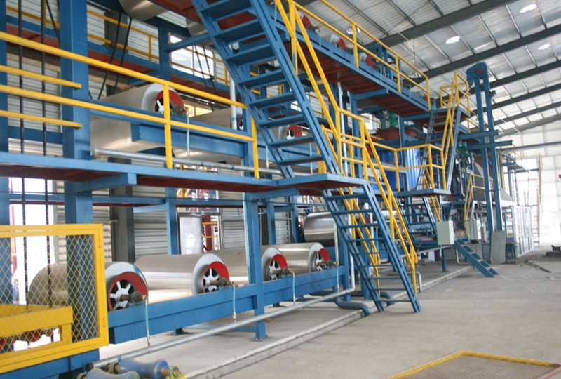 · Dispositivo de desenrolamento da base:Desenrole o material de base (como base de poliéster, base de fibra de vidro, etc.) da bobina e mantenha uma certa tensão e velocidade para fornecer uma base estável para o subsequente processo de impregnação e revestimento.