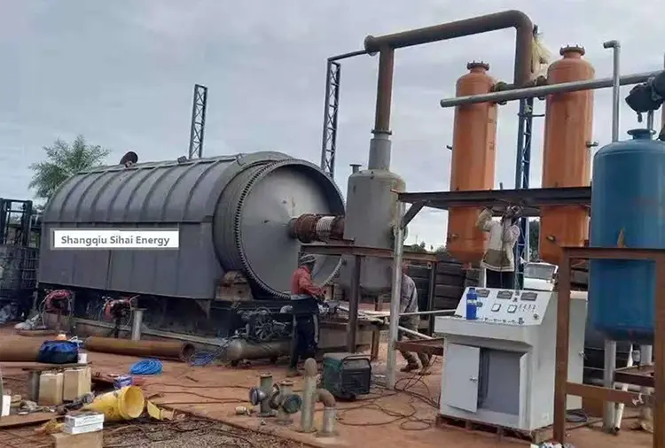 O equipamento de refino de óleo de pneu resíduos realiza a reciclagem de recursos através da tecnologia de pirólise. Seu processo principal é decompor pneus de resíduos em altas temperaturas em um ambiente fechado em recursos como óleo combustível, preto de carbono e fio de aço. A seguir, é apresentado um resumo das principais informações deste dispositivo: